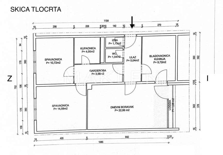 Uz male preinake, postoji mogućnost prenamjene stana u četverosoban.