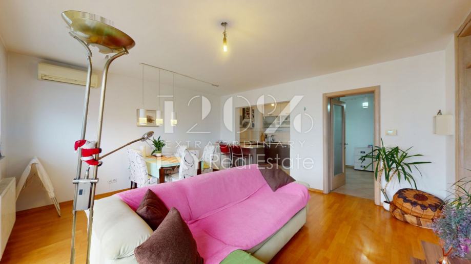 Prodaje se funkcionalni trosobni stan ukupne površine 70 m2 u novijoj stambenoj zgradi na šestom katu s liftom.