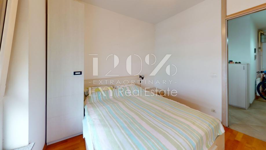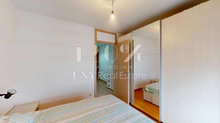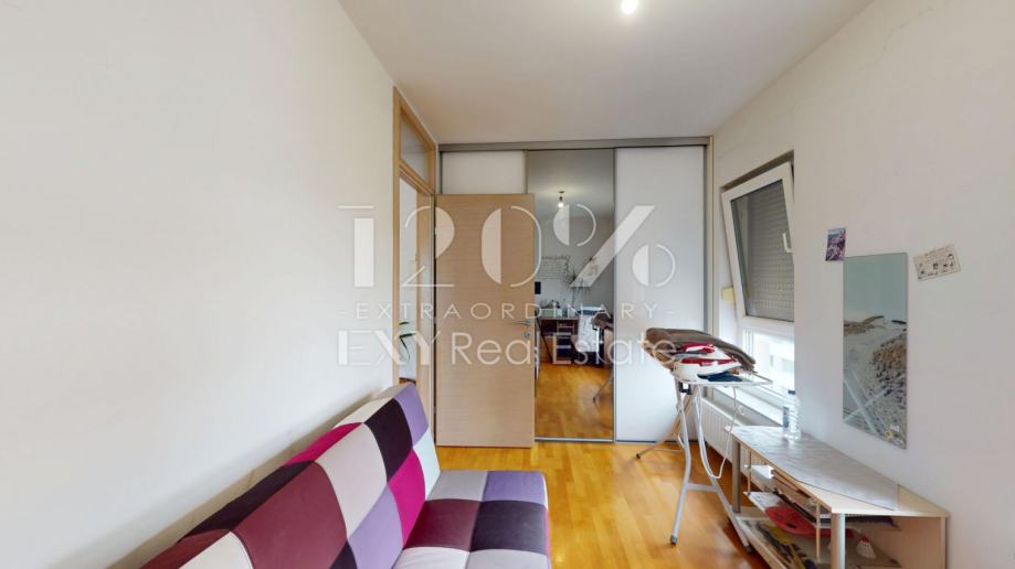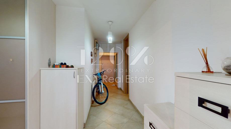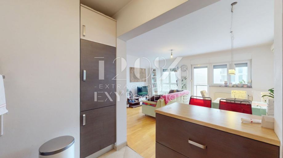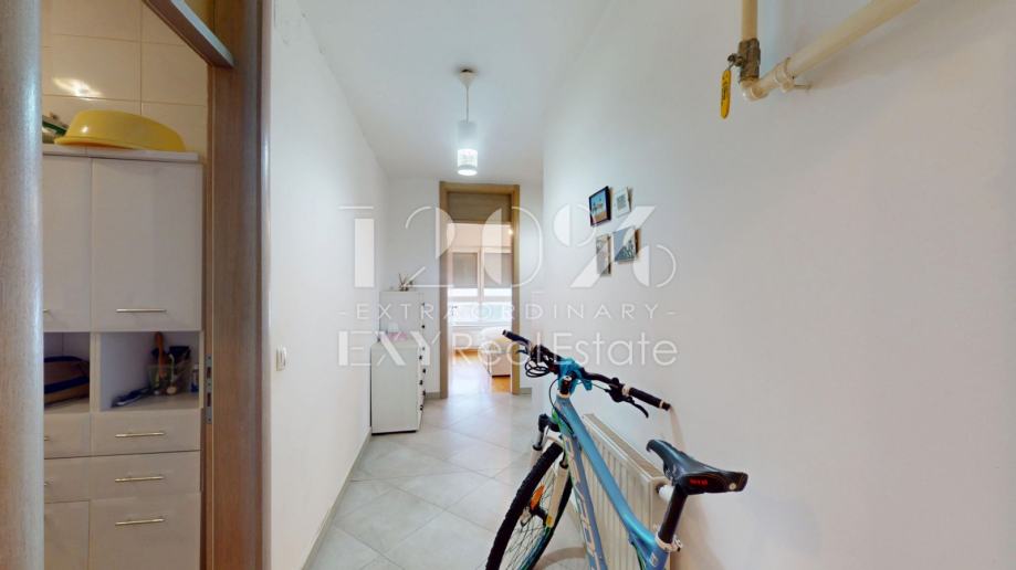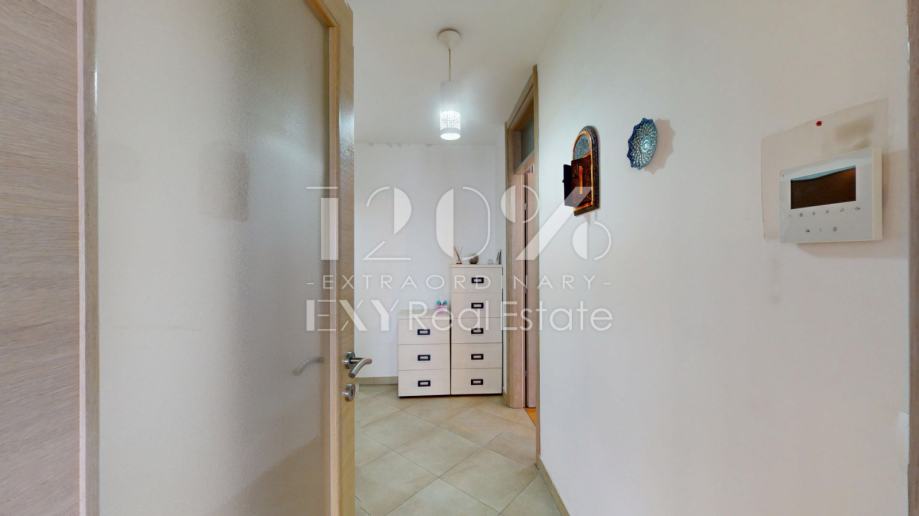 Sastoji se od ulaznog hodnika, open space dnevnog boravka s kuhinjom i blagovaonom s izlazom na balkon, dvije spavaće sobe i kupaone s wc-om.