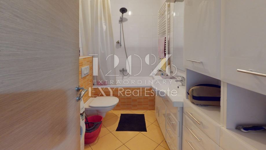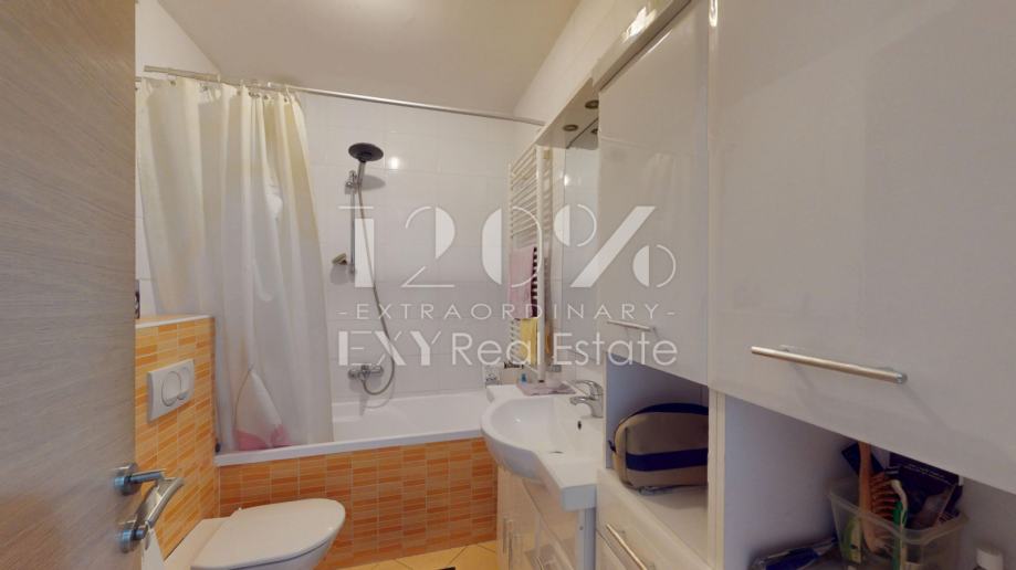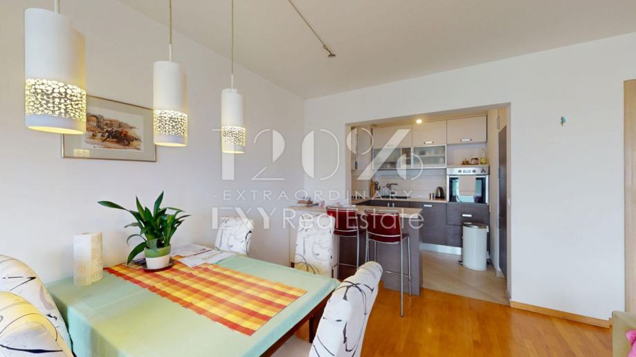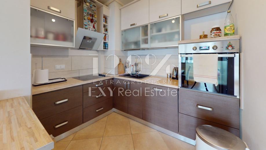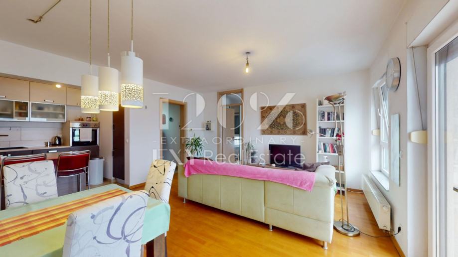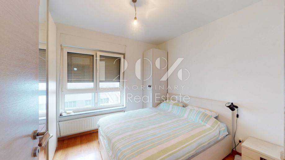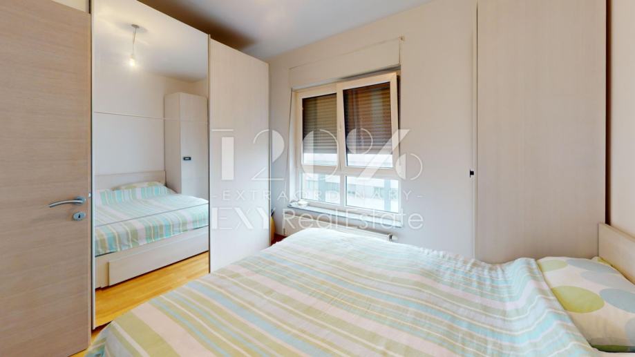 Sastoji se od ulaznog hodnika, open space dnevnog boravka s kuhinjom i blagovaonom s izlazom na balkon, dvije spavaće sobe i kupaone s wc-om.