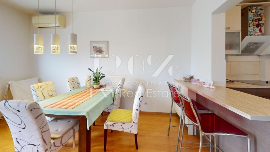 Grijanje etažno plinsko centralno, klimatiziran. Kompletno namješten i uređen. Orijentacija jug zapad, što mu omogućuje obilje prirodnog dnevnog svjetla.