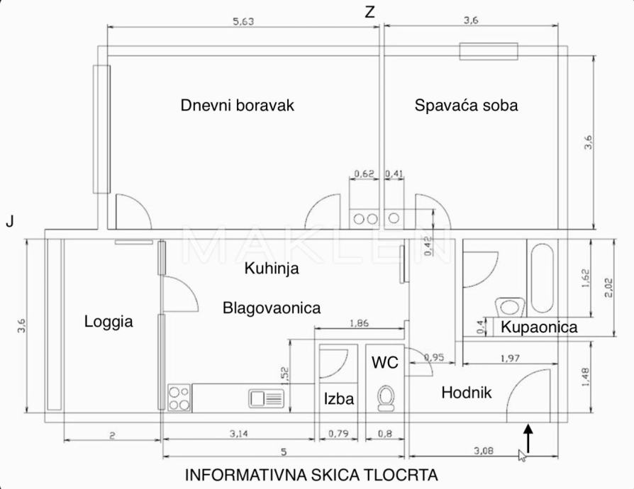 Stan je trenutačno namijenjen kao dvosoban, ali uz minimalne preinake može biti trosoban.
