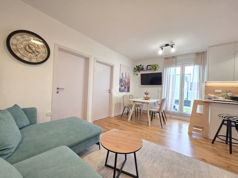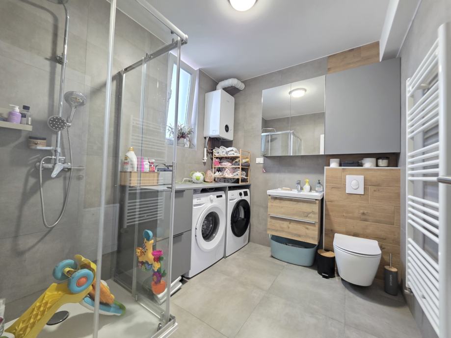 Stan se nalazi na mirnoj i ugodnoj mikrolokaciji, idealnoj za obiteljski život. U neposrednoj blizini su škola, vrtići, sportski tereni i trgovine, a prometna povezanost je odlična – blizina stanice vlaka i autobusne linije 215 prema Kvatriću.