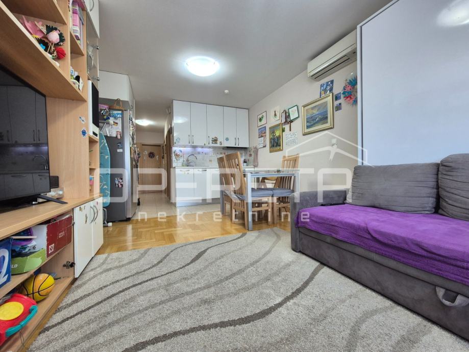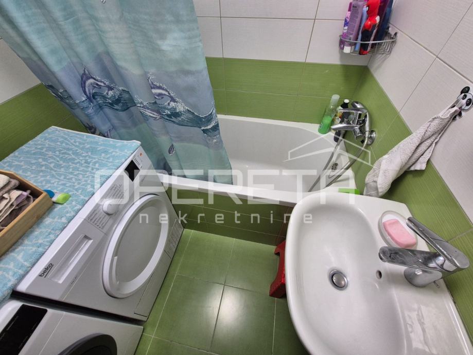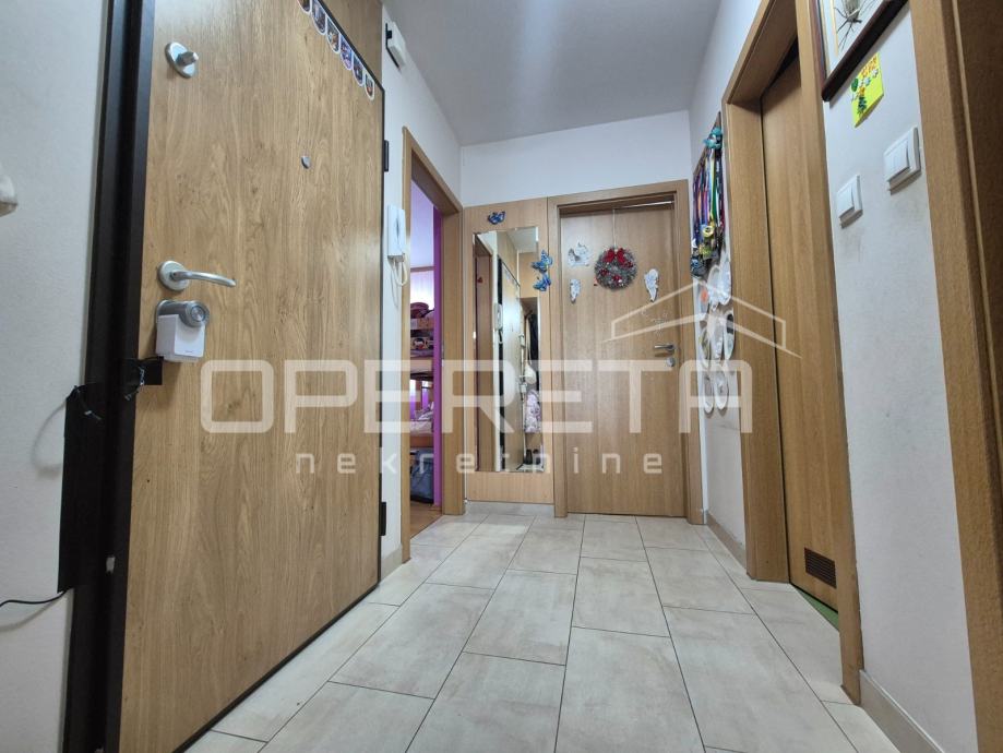 STAN PRODAJA, ZAPRUĐE, Balokovićeva ulica, 54,57 m2, 2,5-soban stan na V. katu zgrade sa liftom, u originalu 2 soban stan koji je zbog potreba obitelji uređen i rekonstruiran u 2,5-soban. Trenutni raspored sastoji se od ulaznpg hodnika, dnevnog boravka u komunikaciji sa kuhinjom, kupaonice, odvojenog wc-a, ostave, te dviju spavaćih soba. Stan je kompletno renoviran pirje 5 godina što uključuje instalacije, PVC stolariju, unutarnju stolariju, novu klimu, vodomjer, alarmni sustav, videonadzor. Kroz stan je provučena optika. S obzirom na orijentaciju, stan je izuzetno svijetao i ima lijepi, otvoreni pogled prema istoku i zapadu. Mikrolokacija prepoznatljiva i vrlo praktična s obzirom da su svi potrebni sadržaji uključujući i javni prijevoz na svega nekoliko koraka od same zgrade. Slobodan parking.