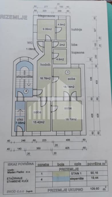 Prodaje se jedinstveni 3-sobni stan u samom centru grada na Britanskom trgu u jednoj od najpoznatijih ulica grada, svega 2 minute od tramvajske stanice. Stan je 90,16m2 te se sastoji od ulaznog velikog hodnika iz kojeg se ulazi u dnevnu sobu i dvije prostrane spavaće sobe. U drugom dijelu stana senalazi kuhinja s blagovaonicom, kupaonicom s tuš kadom, odvojenim toaletom, ostavom i balkonom sa izlazom na dvorište s roštiljem. Dvorišna strana stana je zapadna strana okružena prirodom, zelenilom i vrlo je sunčana. Sobe su okrente na istok. Tlocrt stana je vrlo zahvalan te se može i korigirati za vrijeme obnove zgrade. Zgrada ide u energetsku obnovu unutar pola godine, sredstva iz EU fondova su već uplaćena stanarima na račun. U zgradi je svega 4 stana te su stanari složni oko obnove i općenito brige o zgradi. Stanu pripadaju i podrumske prostorije od cca 5m2. Parking se vrlo lako nađe u blizini stana u 2. parking zoni. Vlasništvo je 1/1. Agentica: Ivana Zeljko