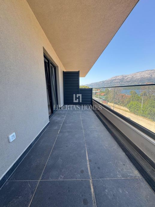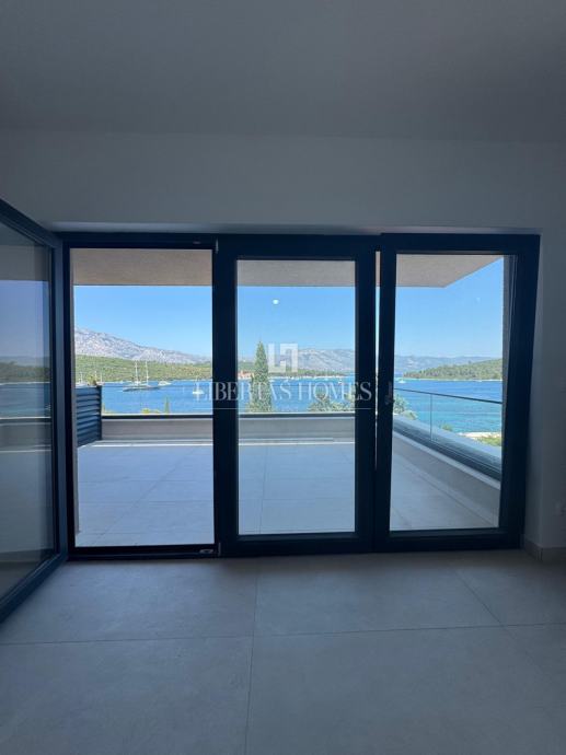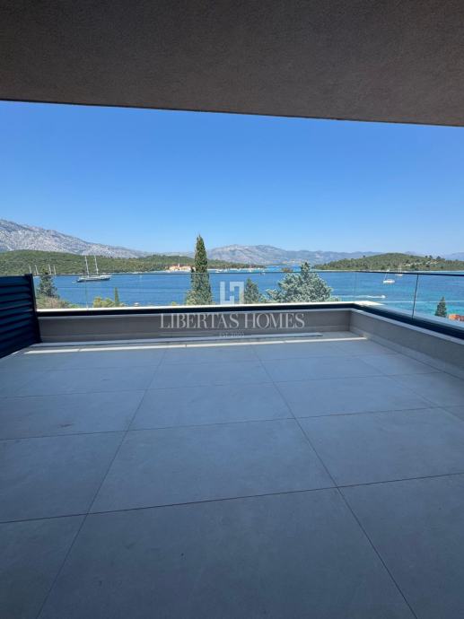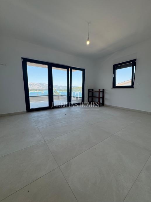 Prodaje se prekrasan dvoetažni stan u novogradnji smješten u mirnoj i slijepoj ulici u gradu Korčuli, neposredno uz more.