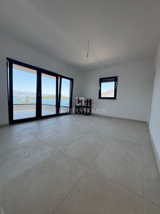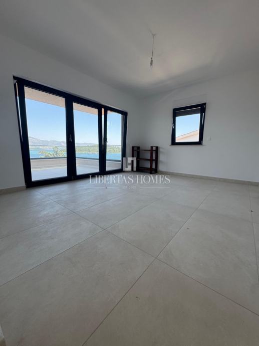 Na prvoj etaži nalazi se prostrana spavaća soba, kuhinja, elegantna kupaonica, praktična sprema te veliki dnevni boravak s izlazom na balkon s kojeg se pruža nevjerojatan pogled na more i obližnje otoke.