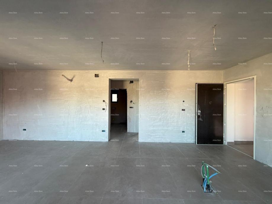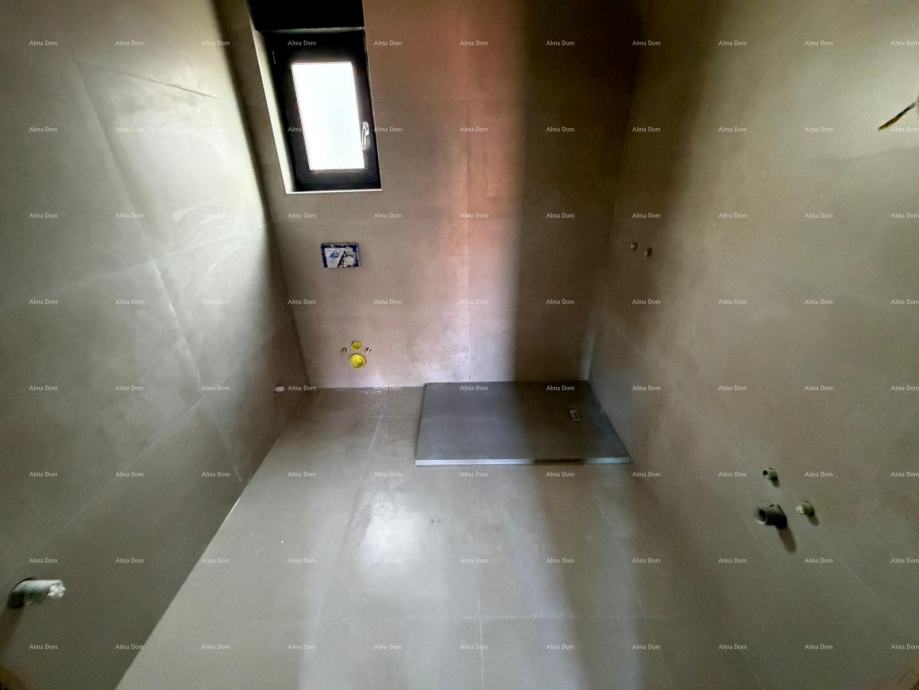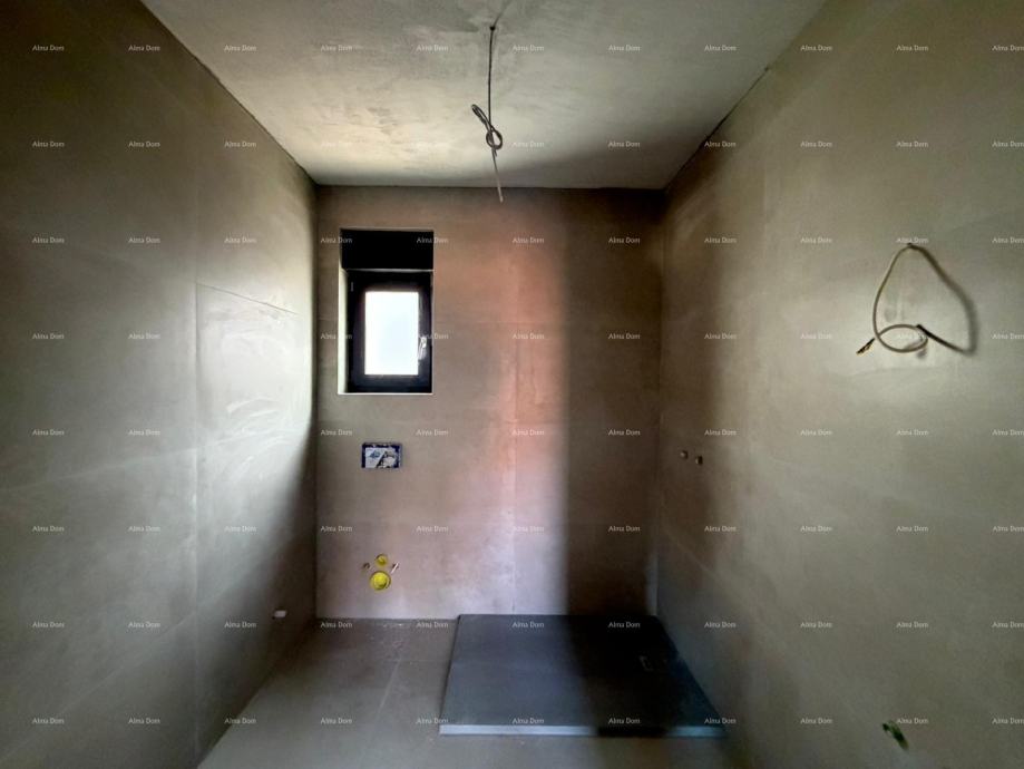 Na prodaju je moderan dvosoban stan s terasom i prekrasnim pogledom na more i maslinik, smješten u mirnom naselju, u blizini centra Umaga i mora.