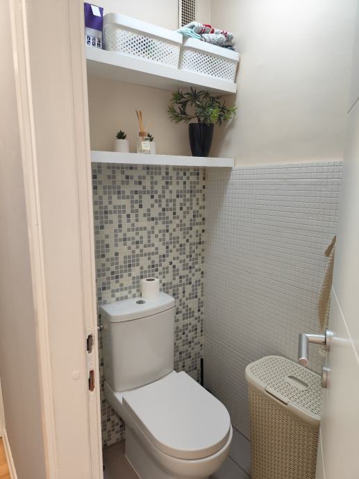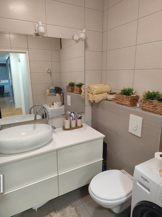 Stan ima dvije kupaonice - jednu s WC-om i jednu zasebni WC, ukupno dva WC-a. Grijanje je priključeno na gradsku toplanu.