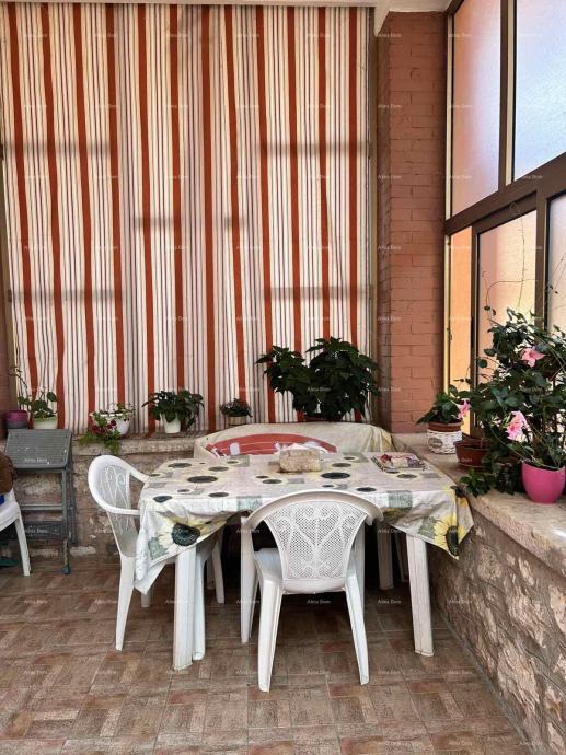 Stan se nalazi na odličnoj lokaciji, prvi red do mora. Stan se sastoji od dugačkog hodnika, gdje sa jedne strane se nalazi denvni boravak koji je odvojen od kuhinje i blagavaone staklenim kliznim vratima. S druge strane hodnika nalaze se dvije spavaće sobe i kupaona. Iz kuhinje se izlazi na terasu u stražnjem dijelu stana, gdje se nalazi i veliko dvorište, pomoćni objekt i garaža.