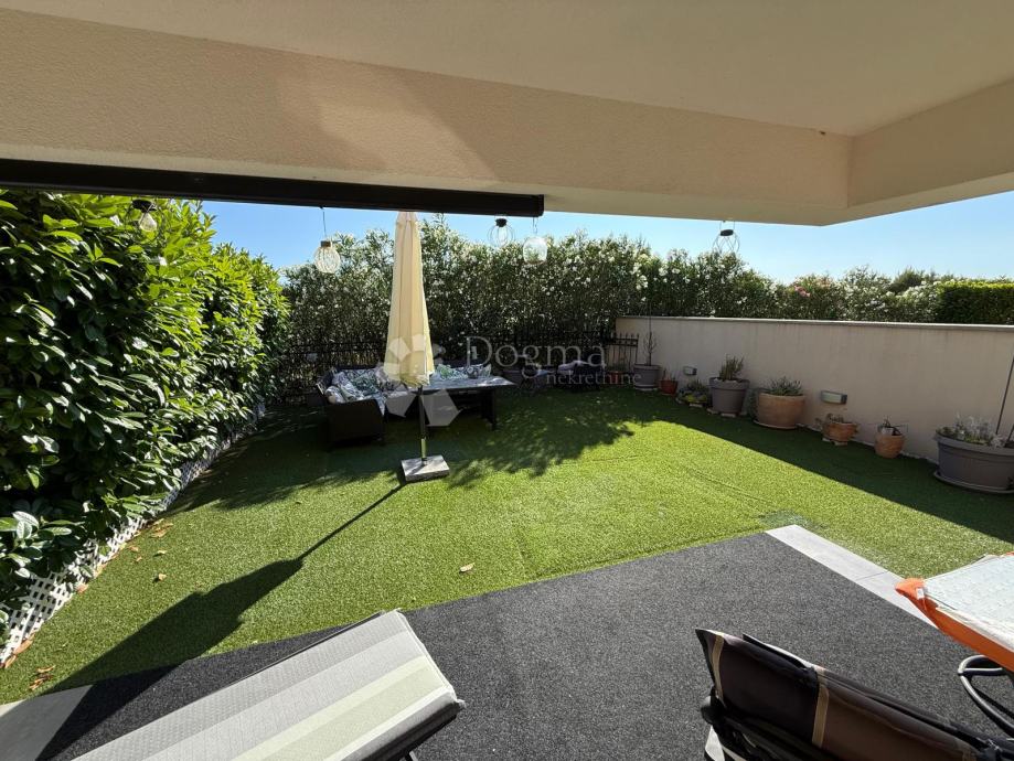 Stan je smješten u modernoj, visokokvalitetnoj zgradi i sastoji se od prostranog dnevnog boravka s kuhinjom i blagovaonicom, spavaće sobe, kupaonice i nenatkrivene terase s izlazom u vrt. Vrt je iznimno prostran 79,88m2, okružen zelenilom koje pruža privatnost i ugodan prostor za opuštanje.