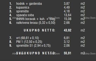 Ovom stanu pripadaju vrt, 1 parkirno mjesto i spremište - uključeno u cijenu.