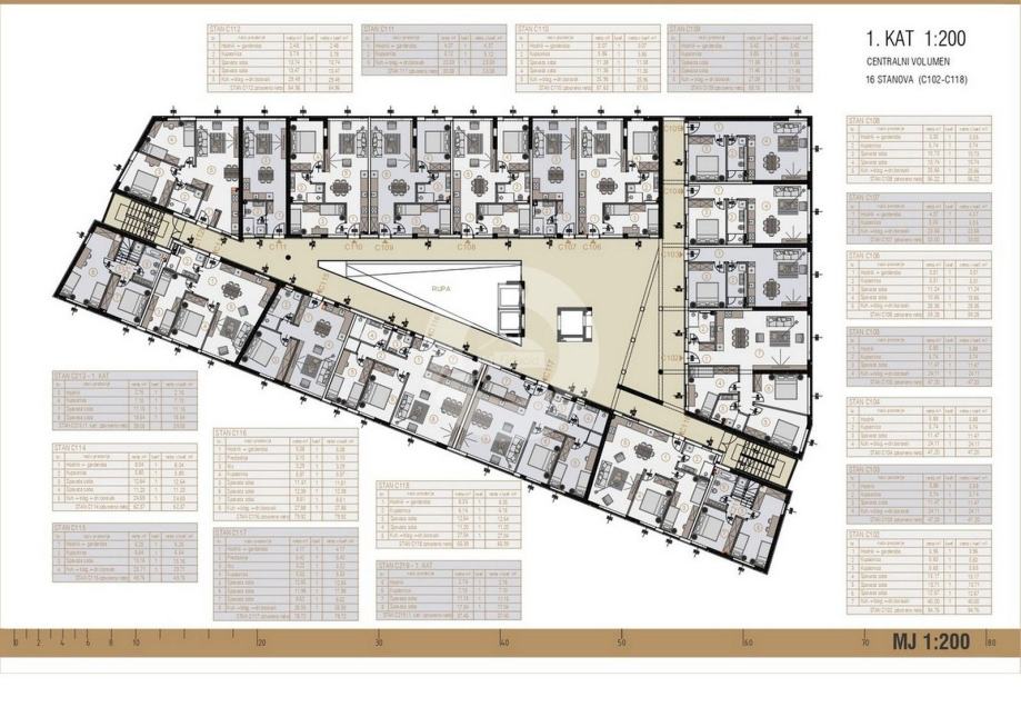 U ovoj luksuznoj zgradi prodaju se stanovi u prizemlju, prvom, drugom i trećem katu kvadratura od 32 m2 do 146 m2.