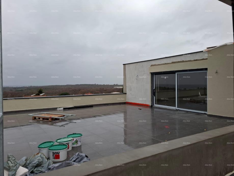 Hodnika, predsoblja, kuhinje+blagovaonice+dnevnog boravaka, 2. kupaonice, 3 spavaće sobe i velike nenatkrivene terase.