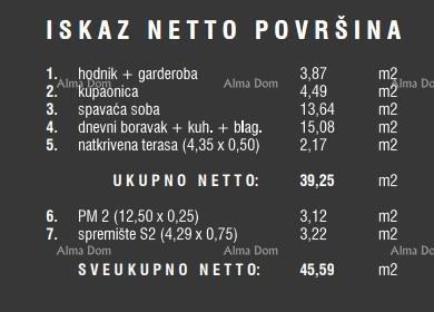 Ovom stanu pripada 1 parkirno mjesto i spremište koje je uključeno u cijenu.