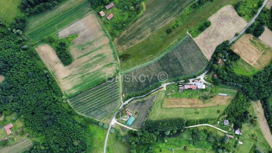Čestica na kojoj se nalaze kuća i gospodarski objekt prostire se na 6394m2 te se nalazi unutar građevinskog područja s koeficijentom izgradiovosti 0.4. Na šest čestica površine 28 490 m2 poljoprivrednog područja posađene su borovnice, dok preostale dvije čestice jednakih dimenzija (5755 m2) nisu obrađene.