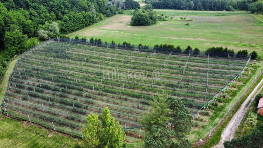 Čestica na kojoj se nalaze kuća i gospodarski objekt prostire se na 6394m2 te se nalazi unutar građevinskog područja s koeficijentom izgradiovosti 0.4. Na šest čestica površine 28 490 m2 poljoprivrednog područja posađene su borovnice, dok preostale dvije čestice jednakih dimenzija (5755 m2) nisu obrađene.