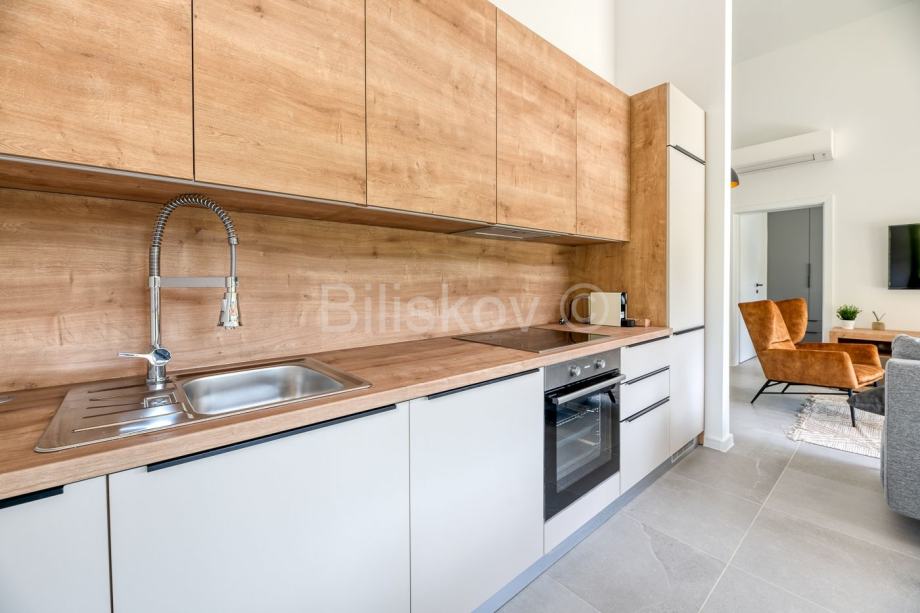 Kući pripada terasa površine 70m2, wellness (sauna), jacuzzi i 3 parkirna mjesta.