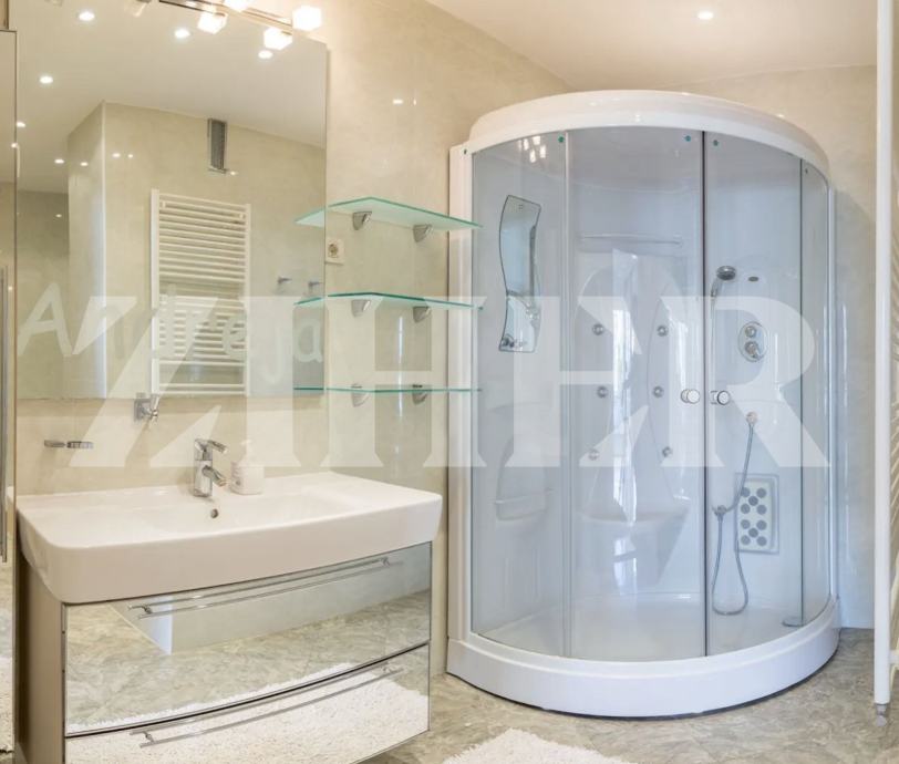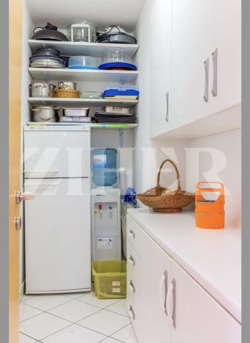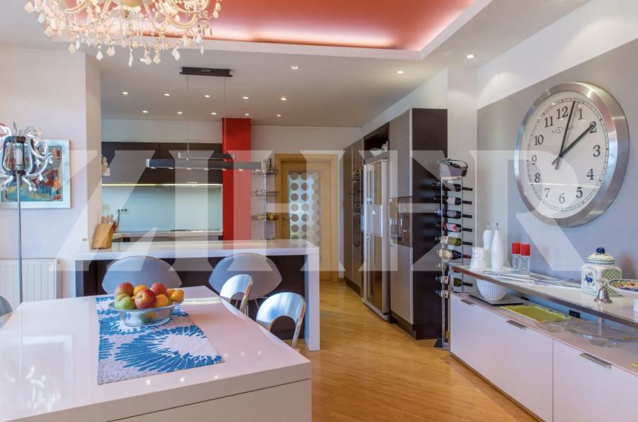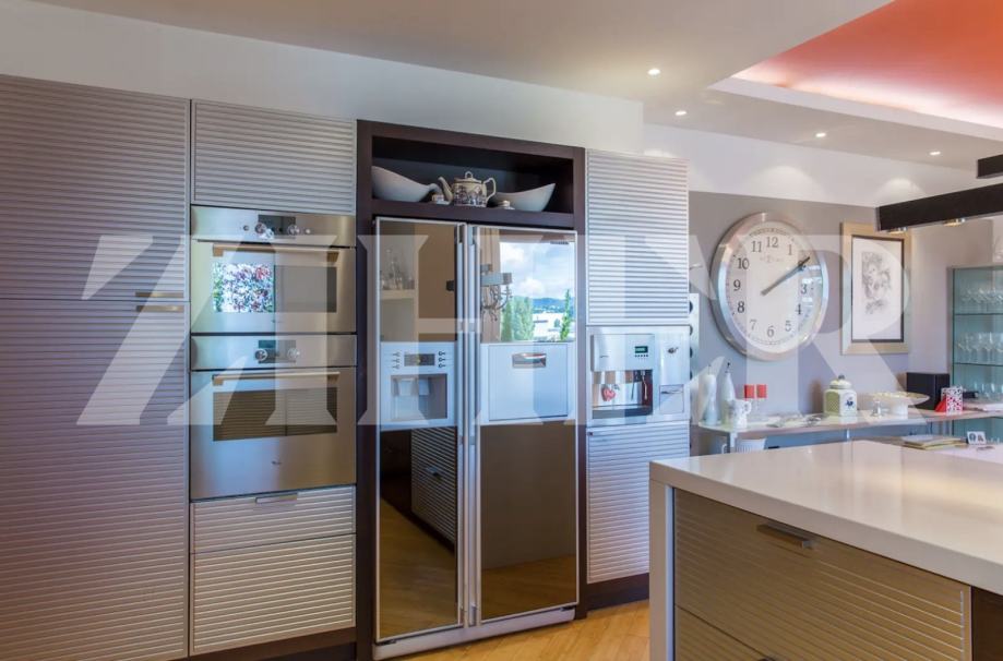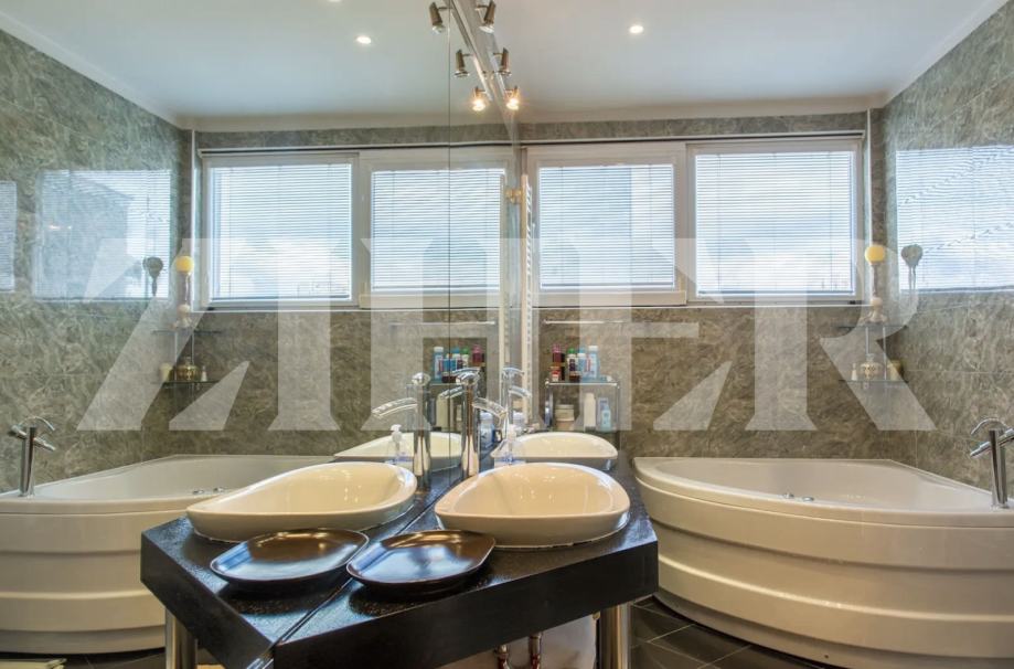 Stan se sastoji od ulaznog prostora u koji se ulazi direktno iz lifta, koji vodi od garaže na -1 etaži ili, prostranog dnevnog boravka, blagavaonice s kuhinjom, master spavaće sobe s garderobom i kupaonicom, dvije spavaće sobe koje svaka ima svoju kupaonicu, vešeraja, spremišta, wc-a za goste i dodatnog dnevnog boravka koji je napravljen zatvaranjem dijela terase te legaliziran, ukupne površine 270 m2. Stan ima velike terasa oko stana, na kojem se nalazi puno zelenila, roštilj, jacuzzi, ukupne površine 130 m2.