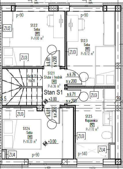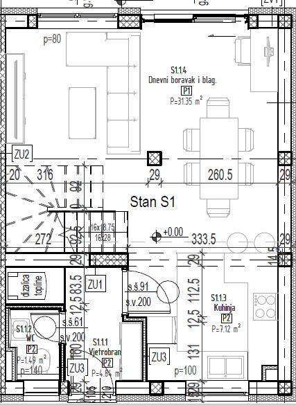 S1 UKUPNO = 89,01 m2 + 8,24 m2 =97,25 m2