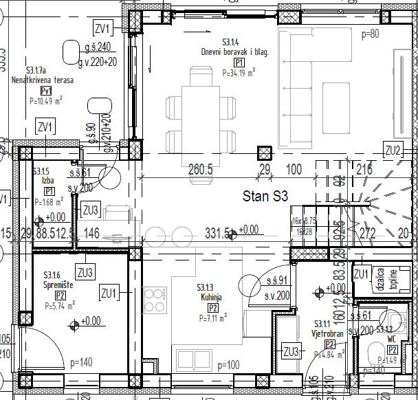 S3 UKUPNO = 99,23 m2 + 23,99 m2 =123,22 m2