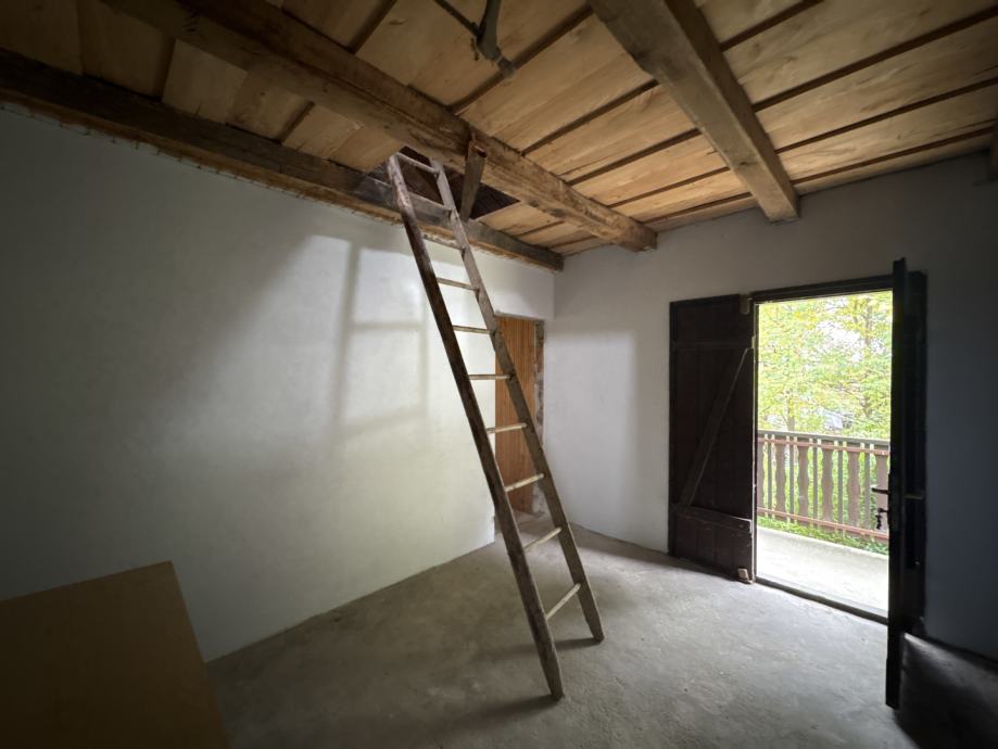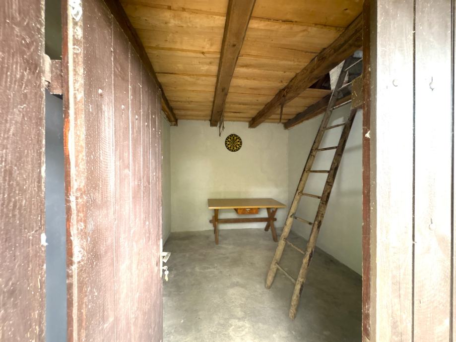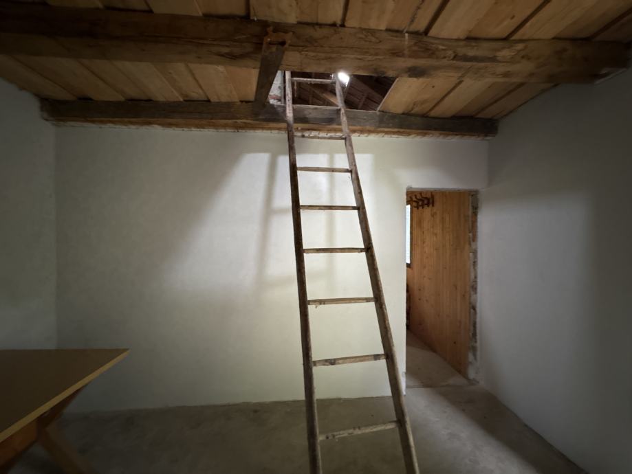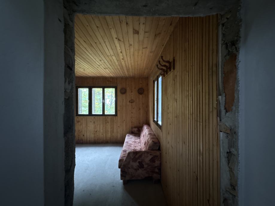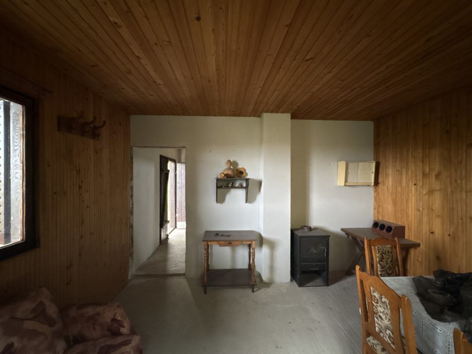 Prizemlje je pravokutnog oblika (7,20 x 4,40 m2) s natkrivenim ulazom, a unutra se nalaze dvije prostorije. U jednoj od njih nalaze se ljestve koje vode u tavanski prostor, koji može poslužiti za dodatno odlaganje ili za sušenje suhomesnatih proizvoda. Druga prostorija uređena je kao mjesto za druženje tu se nalazi stol, stolice, klupa i dvosjed, prikladno za okupljanja s prijateljima i obitelji. Vikendica ima balkon, a stolarija je drvena.