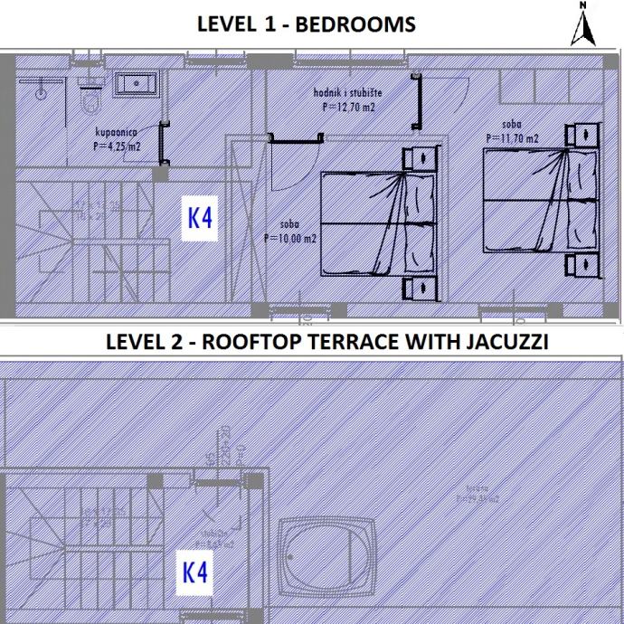 1.kat: 2 spavaće sobe, hodnik, kupaonica 2