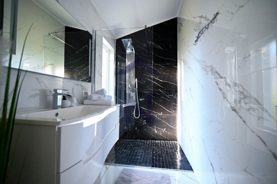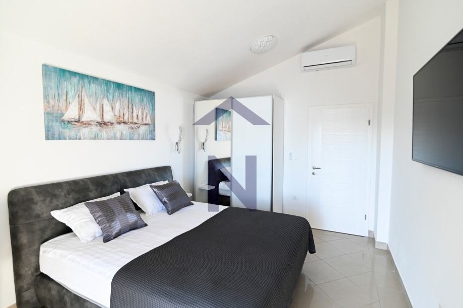 Vila je opremljena s dvije ugradbene kuhinje, boxspring hotelskim krevetima, smart led televizorima i klima uređajima u svim prostorijama.