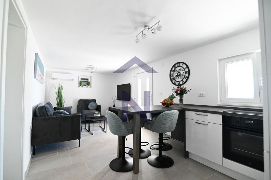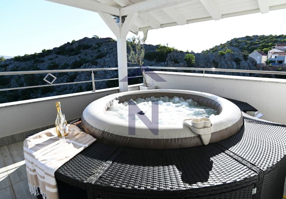 Također ima izlaz na 2 prostrane terase s pogledom na more i otok Pag.