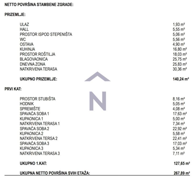 Vila se sastoji od prizemlja i prvoga kata, neto površine od 267 m2.