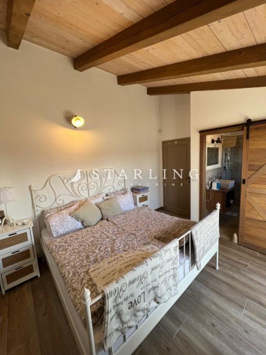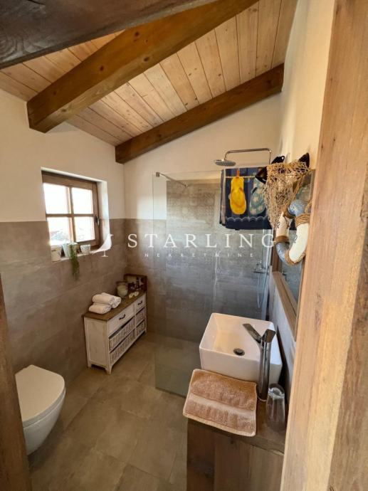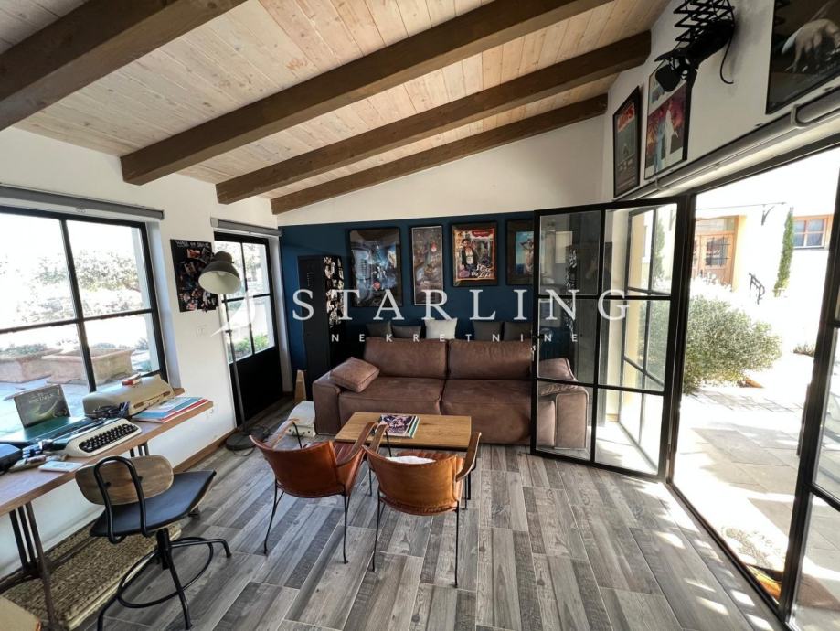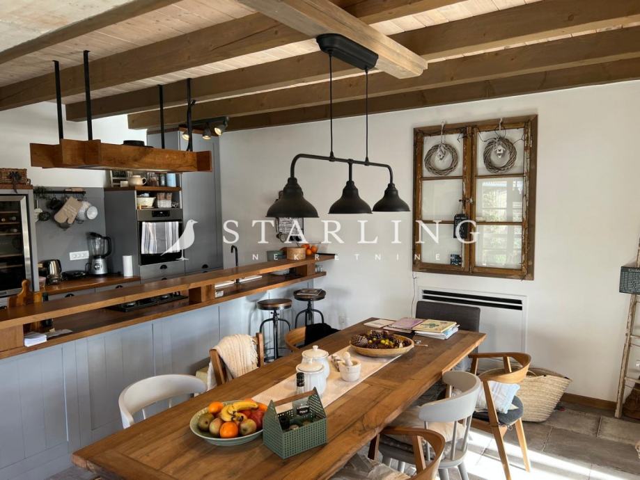 Prodaje se prekrasna i vrhunski uređena vila u okolici Svetvinčenta. Vila se sastoji od prizemlja u kojem se nalaze prostrani dnevni boravak s kaminom i izlazom na vanjski bazen, velika blagovaona s kuhinjom te natkrivenu terasu i toalet.