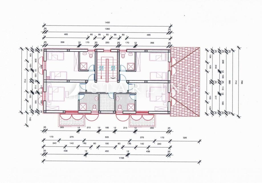 Prvi kat se sastoji od četiri spavaće sobe od kojih svaka ima vlastitu kupaonicu.