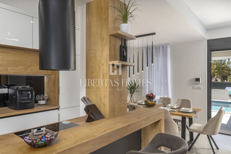 Prodaje se potpuno namještena, s pažljivo odabranim interijerom koji odiše sofisticiranošću i elegancijom. Udaljena samo 15 minuta vožnje od Zadra i 30 minuta od zračne luke, ova nekretnina nudi idealan balans luksuza, privatnosti i izvrsne povezanosti s urbanim sadržajima.