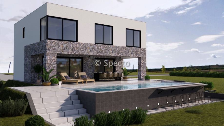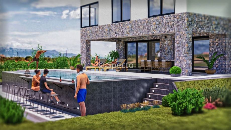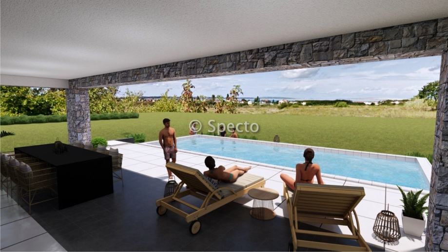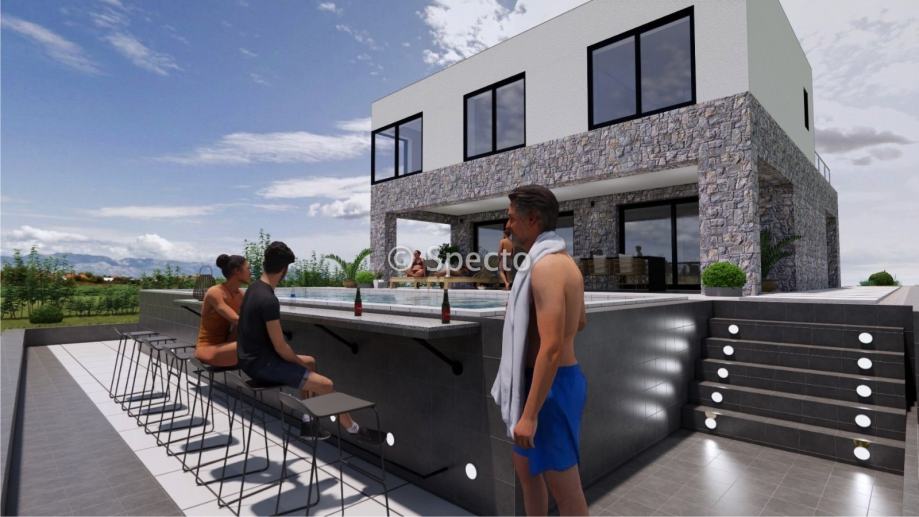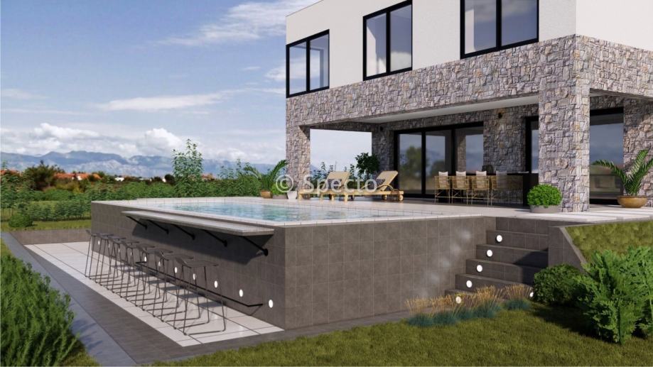 Prodajemo villu s bazenom u izgradnji i pogledom na more, netto korisne površine 151m2, u blizini Zadra, u mjestu Vrsi.