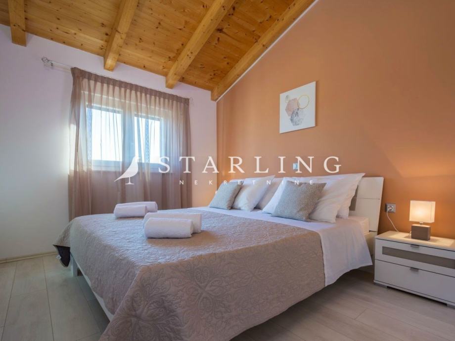 Kat se sastoji od tri spavaće sobe i kupaonice. Glavna spavaća soba ima prekrasan pogled na more.