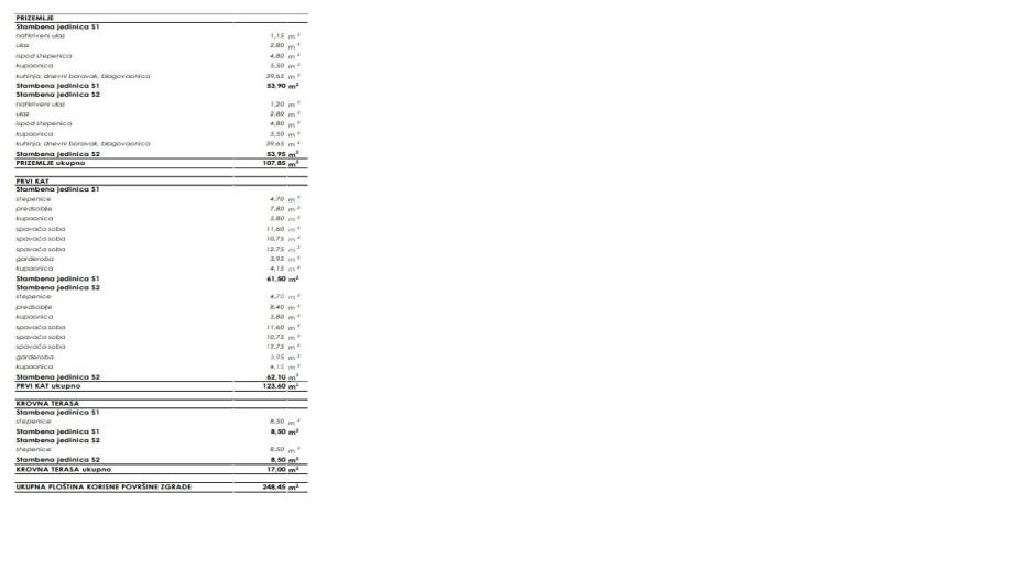 Važna napomena: Kuća je koncipirana kao duplex – dvije zasebne etažirane jedinice, svaka sa svojim ulazom, bazenom, krovnom terasom i svim priključcima. Time se osigurava privatnost i potpuna samostalnost svake strane objekta.