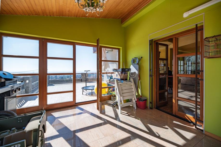 Stan se sastoji od predvorja s gostinjskim wc-om, iznimno velikog dnevnog boravka u sklopu kuhinje i blagovaone sa izlazom na prekrasnu terasu koja ima panoramski pogled, unutarnje stepenište, tri spavaće sobe sa kupaonicama i zimski vrt.