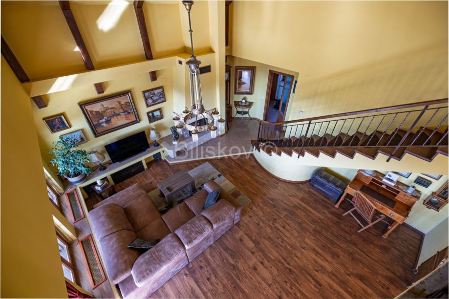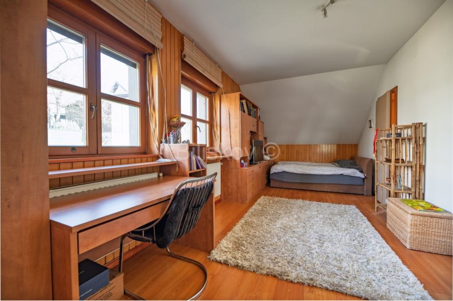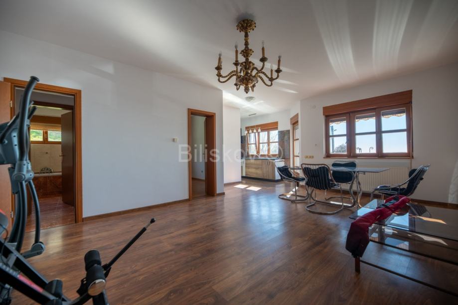 Na prvom katu i u potkrovlju se nalazi zaseban dvoetažan četverosoban stan.