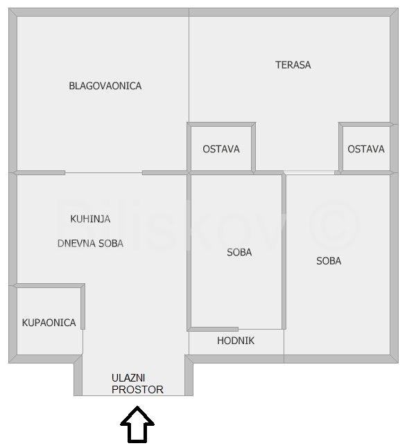 Stan se sastoji od dnevnog boravka, kuhinje, dvije spavaće sobe, terase, loggie, ulaznog prostora, kupaonice, dvije ostave i hodnika. Stanu pripada spremište u podrumu zgrade.
