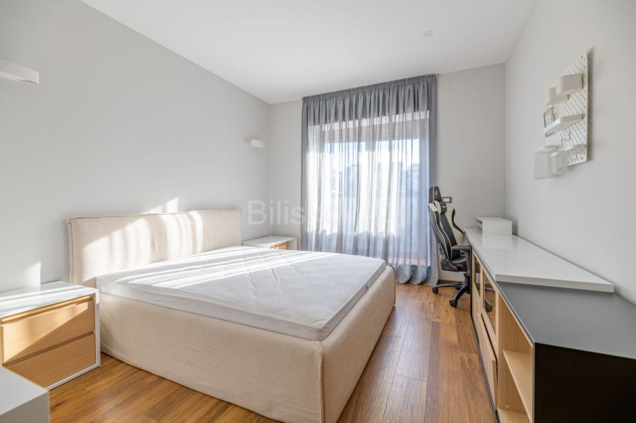 Vila se prostire na četiri etaže i uključuje tri spavaće sobe, ulazni hodnik, predsoblje, stepenište, četiri terase, tri kupaonice s WC-om, prostrani dnevni boravak otvorenog koncepta s kuhinjom i blagovaonicom, bazen, saunu i gospodarsku prostoriju. Dodatnu vrijednost pružaju uređeni vrt i tri parkirna mjesta, od kojih su dva natkrivena.