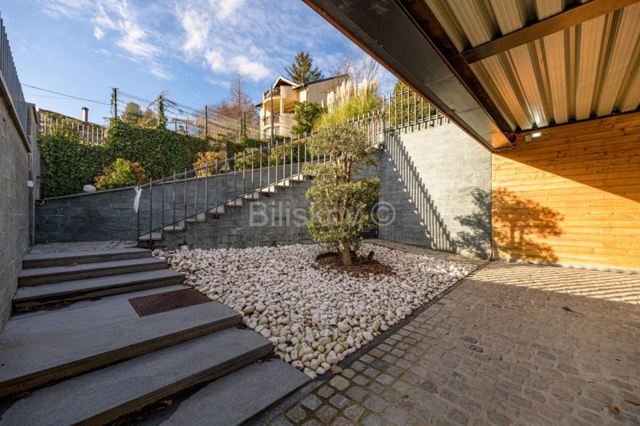 Smještena na mirnoj lokaciji na obroncima Medvednice, vila je okružena prostranom okućnicom i pažljivo uređenim hortikulturnim vrtom.