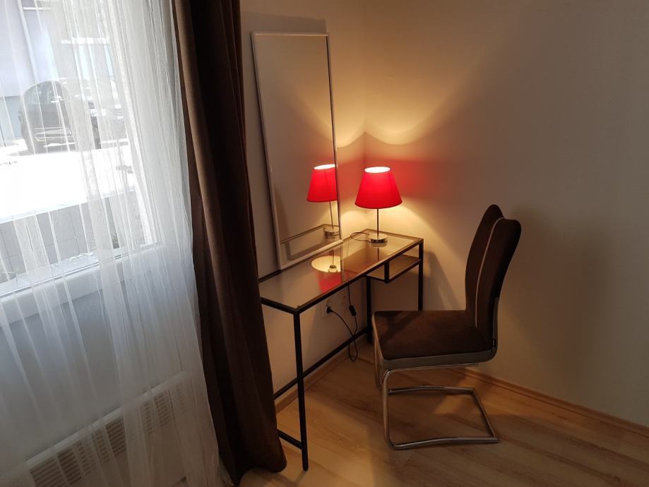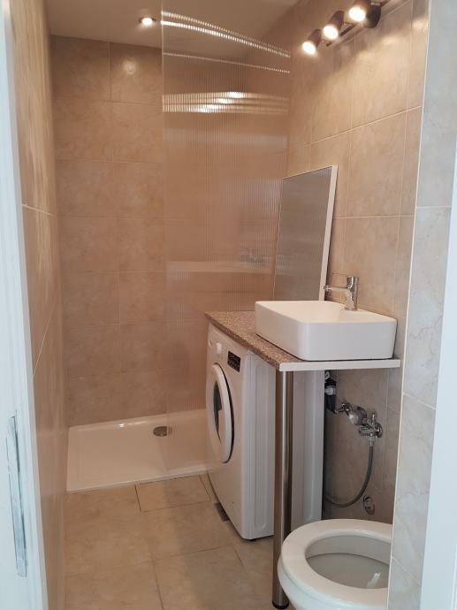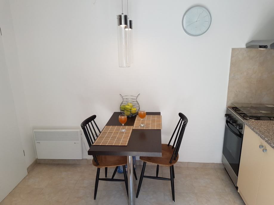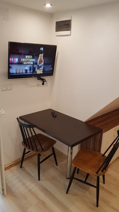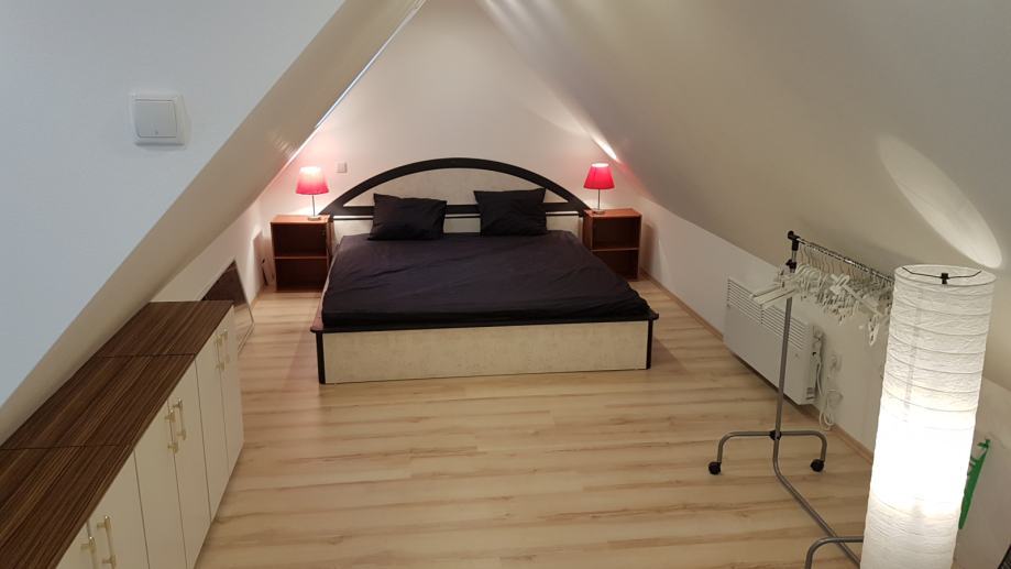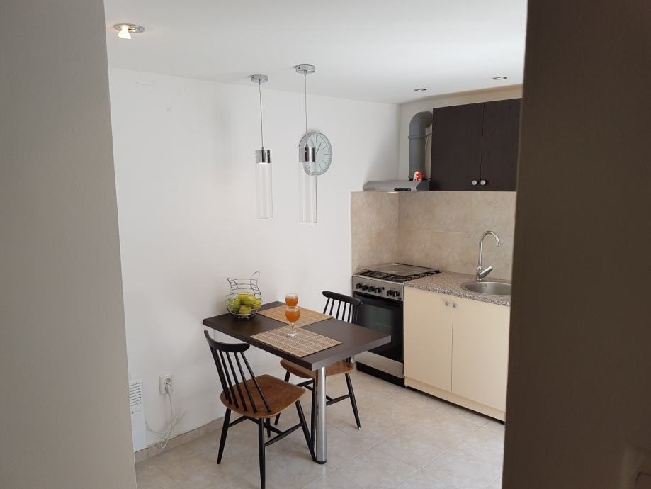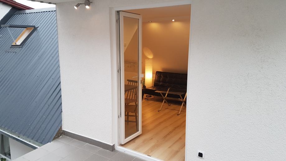Apartman u potkrovlju se sastoji od kuhinje s blagovaonom i dnevog boravka/spavaćeg prostora i kupaonice, površine 30m2 te terase 10m2.