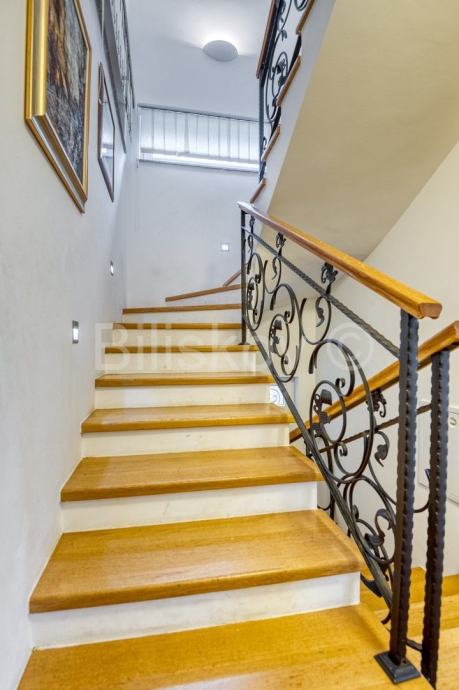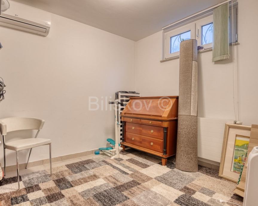 Kuća se sastoji od podruma, prizemlja i kata. U podrumu se nalaze ostava, vešeraj i soba za fitnes.