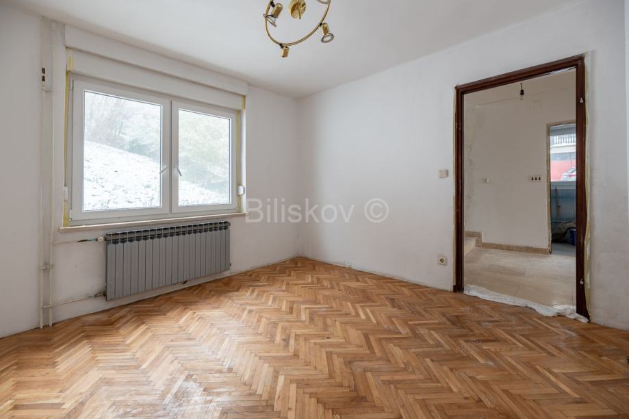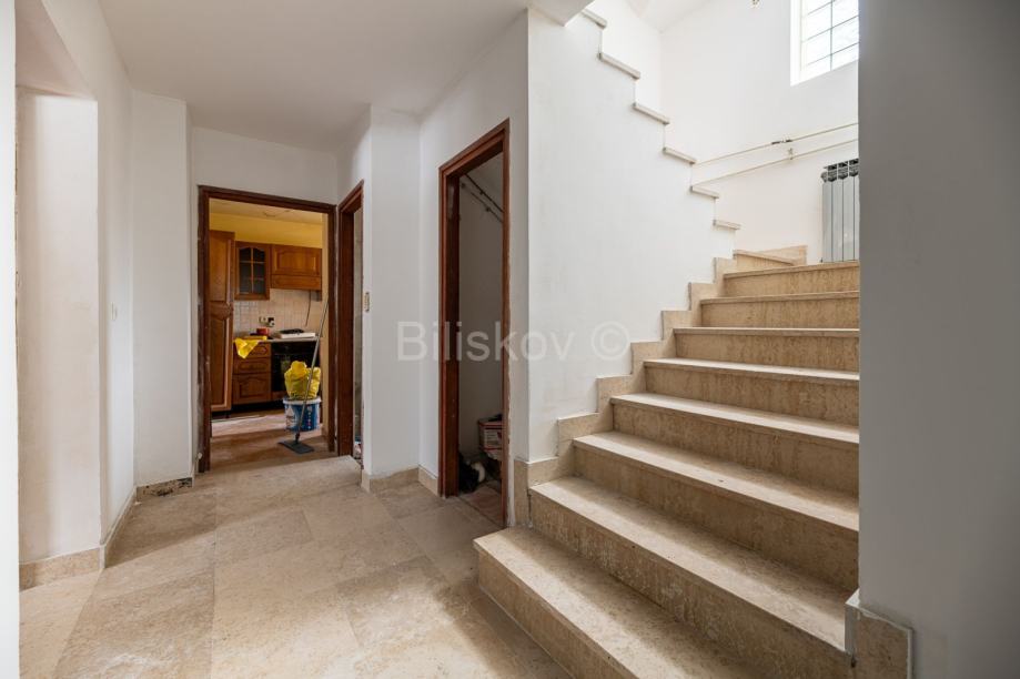 Prizemlje kuće se sastoji od ulaznog hodnika, kuhinje, dnevnog boravka i blagovaonice, wc-a, ostave i kotlovnice. Na katu nalaze tri sobe, kupaonica i balkon. Unutarnjim stubištem dolazi se do potkrovlja koje je trenutno neuređeno (roh bau), a potrebna je i renovacija krova (promijena crijepa).