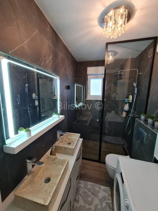 Sastoji se od prostranog dnevnog boravka, kuhinje i blagovaone, dvije spavaće sobe, zimskim vrtom / prostorijom koja je ostakljena i potpuno namještena te funkcionira kao dodatni dnevni boravak.