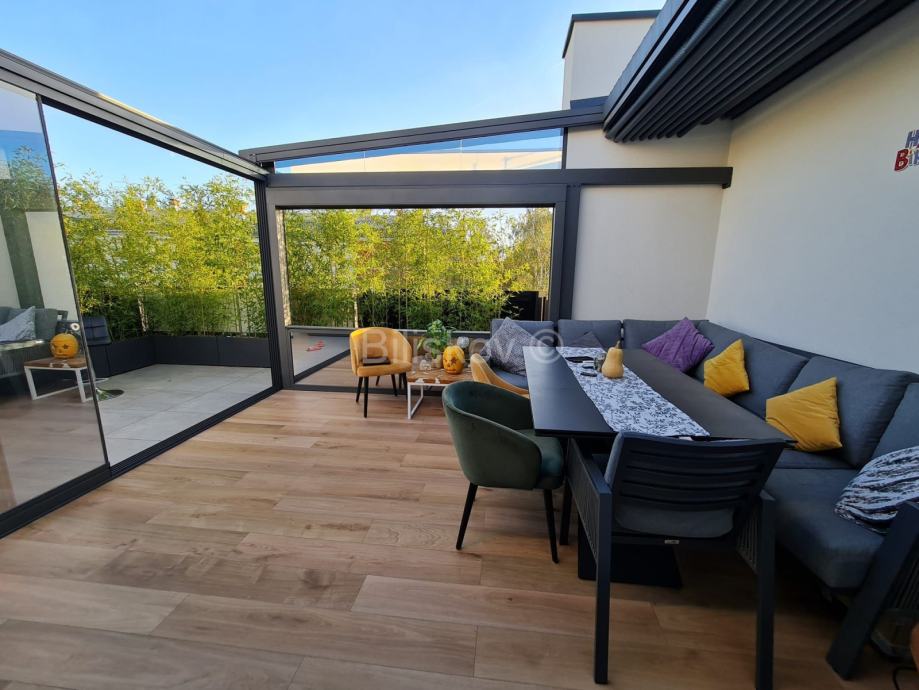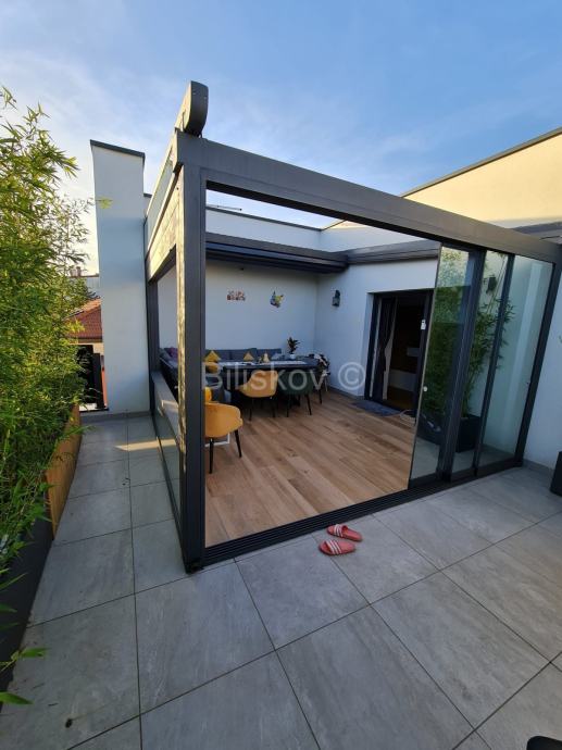 Navedena prostorija je opremljena jako kvalitetnim parketima dok su staklene stijene i krov spojeni na el. motor te se po potrebi jednostavno mogu uvući i stvoriti otvoreni prostor (terasa).