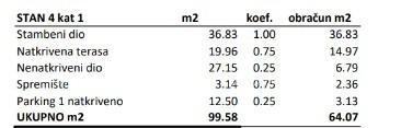 Ovaj lijepi stan, s ukupnom pripadajućom površinom od 99.58 (neto površine 64.07m2) , nalazi se na 1.katu zgrade B.