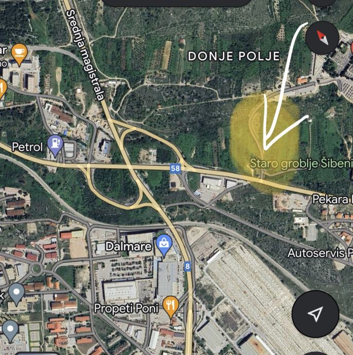 Prodajem poljoprivredno zemljište 1563 m2 koje je udaljeno 50 metra od glavne ceste, 1000 metara od grada Šibenika, 500 metara od shopping centra Dalmare, 200 metara od benzinske crpke.