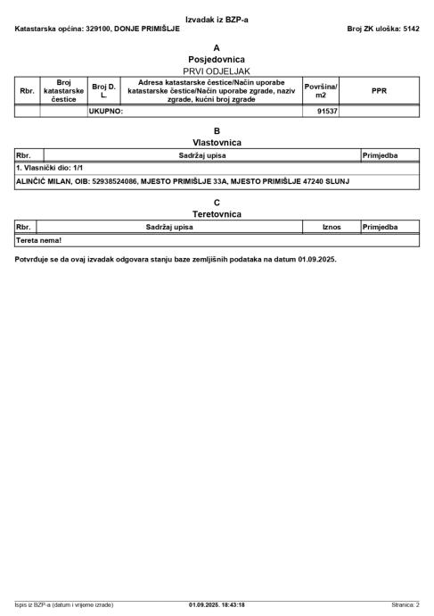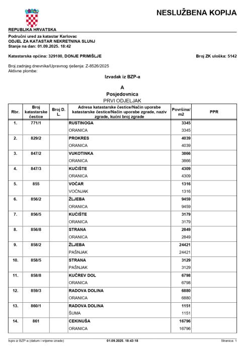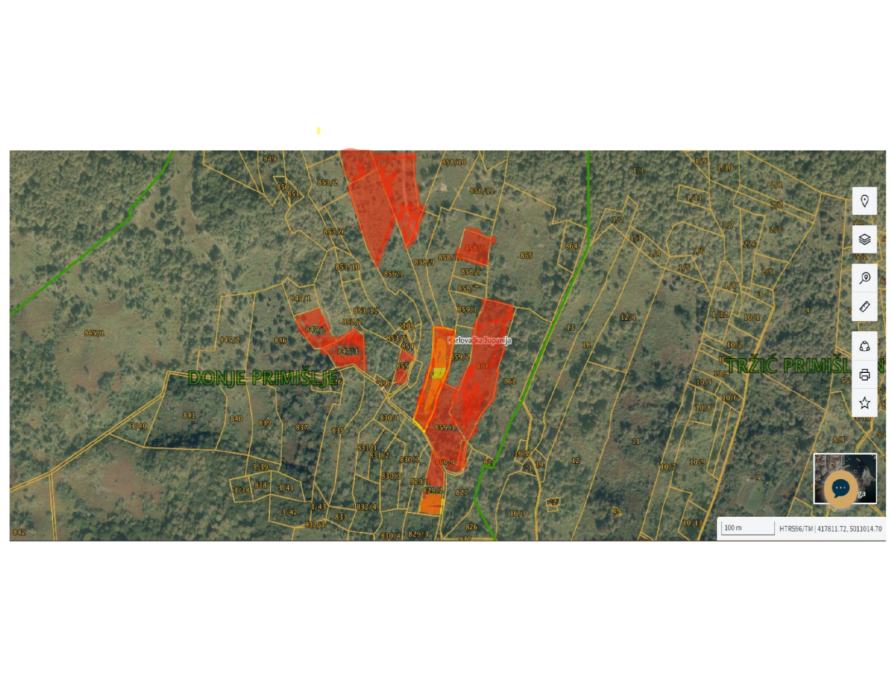 Na prodaju je zemljište ukupne površine 92 752 m² , u katastarskoj općini Donje Primišlje, svega 1,5 km zračne linije od rijeke Mrežnice.