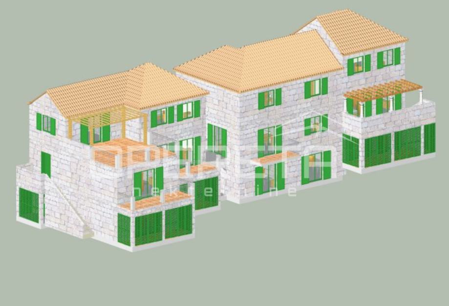 Prodaju se starine sa zemljištem ukupne površine 1841m2 u mjestu Nerežišća na otoku Braču za kojeg je napravljen projekt za turističke svrhe te su za iste ishodovane građevinske dozvole koje bi se trebale obnoviti. Ovo je idealna investicijska prilika sa turističkim potencijalom za investitore u bogatom povijesnom naselju u unutrašnjosti otoka Brača svega 10km udaljenosti od Supetra. Projekt čini spoj tradicionalne I moderne arhitekture na kojem je naglasak na očuvanje autentičnosti, tradicije, ekologije I kulturne baštine.